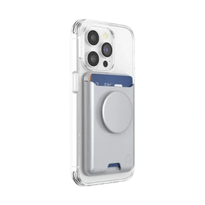 PopSockets Softgoods Phone Wallet with Expanding Grip and Adapter Ring for MagSafe, Card Holder, Wireless Charging Compatible, Compatible MagSafe® Silver