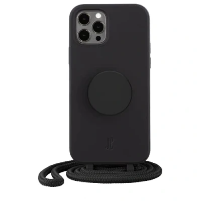 PopSockets x Just Elegance Phone Case for iPhone 12/12 Pro with a Removable Braided Necklace and PopGrip Swappable PopTop Black