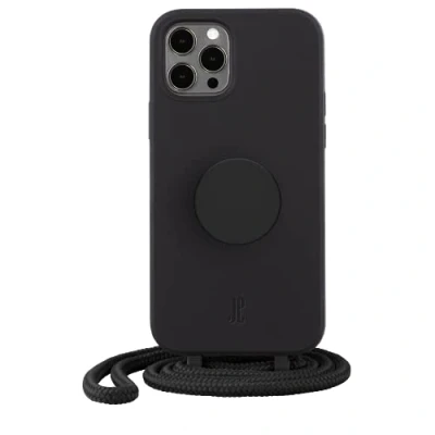 PopSockets x Just Elegance Phone Case for iPhone 12 Pro Max with a Removable Braided Necklace and PopGrip Swappable PopTop Black