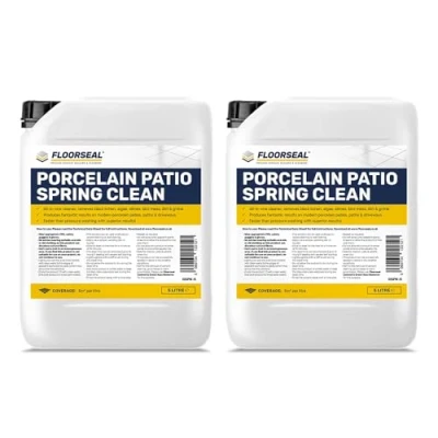 PERFECT FOR THE REMOVAL OF ORGANIC GROWTH & DIRT: This effective porcelain tile cleaner is for all porcelain tiled patio’s. Floorseal Porcelain Patio Spring Clean is a powerful & highly effective cleaning agent – solvent, acid & VOC free. Perfect for cleaning all types of porcelain patio’s, paths & driveways of clag, algae, slime, lichen & grime which typically forms in the colder wetter months. This product can also be used at any time of the year to deep clean. Remove slippery algae, lichen, slimes & leaf staining with ease. SUITABLE FOR: Any kind of exterior porcelain tile. Specifically targets organic contaminations such as algae, black lichen, slime, moss, fungi, bird droppings, tannin & leaf staining. Also removes general ingrained dirt & grime caused by general use & pets – including odours. HUGE COVERAGE: This product is to be diluted at 1:3 with clean water for general cleaning or undiluted for severe tannin contaminations. 5 litres of concentrate diluted at 1:3 will produce 20 litres of cleaning fluid, easily covering 100m2+ of surface area. Apply to the entire surface and associated grout lines, periodically agitating with a medium stiff brush. Rinse off after use. This cleaner can be applied at stronger or weaker concentrations when required. EASY TO APPLY: This porcelain tile cleaner is very easy to apply with a sprayer, bucket or plastic watering can. Keep the product wet during the treatment time (add more cleaning fluid or a little water to do this) and agitate periodically with a medium stiff brush if required. Rinse off after use. You will require no more than a 15 minute dwell time for the product to remove all organic staining, often only a few minutes is sufficient to thoroughly clean your porcelain patio. TACKLES LEAF STAINING & SLIPPERY SURFACES: Apply to patio’s suffering from leaf staining, successfully removes tannin staining form leaf drop. Also removes the slippery film which forms on porcelain patios. STRUGGLING TO CLEAN YOUR PORCELAIN PATIO? Use this product to cut through dirt and grime to restore the just laid appearance of your tiles! No pressure washer required! FURTHER DETAILS: Located at the foot of the page.