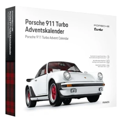 The complete package for all Porsche fans: in 24 steps to the white Porsche 911 Turbo under the Christmas tree, according to the scale and including base and diorama approx. 20 x 10 x 15 cm Detailed vehicle model: multi-part kit with metal body for inserting and screwing, without gluing Loving details: 24 reversible boxes made of environmentally friendly cardboard create a large, attractive motif on the front and back and contain small surprises for the Porsche fan Impressive Effects: Built-in sound module with original engine sound makes the model vehicle come alive at the touch of a button. Exclusive accessories: high-quality, large-format accompanying book, written in collaboration with the Porsche Museum. Includes the history of the Porsche 911 Turbo, Manufacturer: FRANZIS GmbH