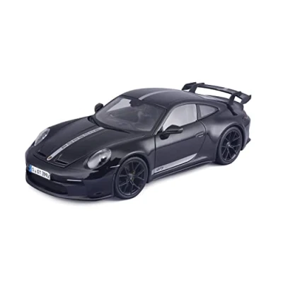 Porsche Maisto 911 GT3 (2023): Model Car in 1:18 Scale, Doors, Boot and Bonnet, Movable, Black with Stripes (536458BKS)