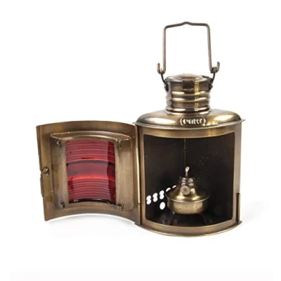 Replica, but functional oil burning Ships Navigation lamp Free-standing or wall-mounted Constructed in sturdy brass and steel. Red port glass lens Uses 12mm single wick 21cm tall