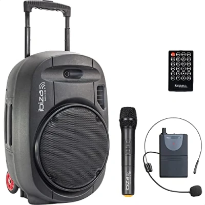 RMS/max power 350/700W MP3 & WMA player with backlit jumbo display USB BLUETOOTH LINE & MIC connectors 2 UHF mics Handheld (863MHz) & Headset (865MHz) Wireless connection of an instrument on the UHF transmitter