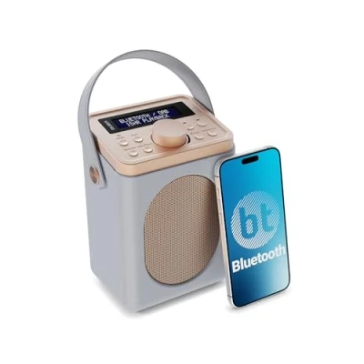 Portable DAB+ Radio with Bluetooth 15 Hour Battery Playback and Mains Powered Dual Alarm & Snooze Function 20+ Presets, LED Display, FM, Headphone Jack MAJORITY Little Shelford (Grey)