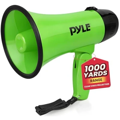 Portable Megaphone Speaker Siren Bullhorn Compact and Battery Operated with 20 Watt Power, Microphone, 2 Modes, PA Sound Foldable Handle for Cheerleading Police Use Pyle PMP22GR (Green)