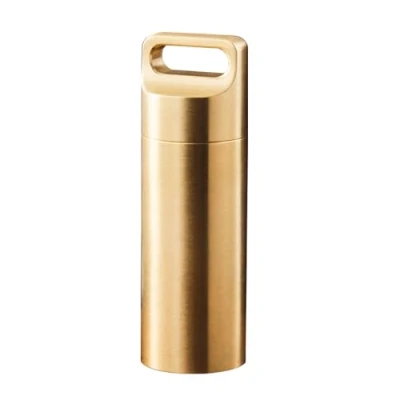 Portable Pill Case Waterproof Box Metal Small Pocket Keychain Medicine for Outdoor Travel Camping (Gold, Large, 1PCS)