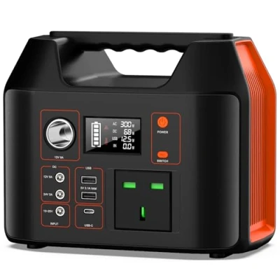 Portable Power Station 300W 296Wh Solar Generator with 230V Pure Sine Wave AC Inverter/12V DC/USB Outputs, Battery Pack for Outdoor Camping, RV, Emergency Supply(Solar Panel Not Included)