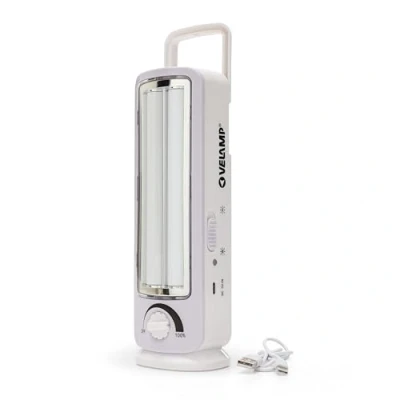 POWERFUL AND DIFFUSED LIGHT – Equipped with two highly efficient SMD LED tubes for a light output of up to 300 lumens with a wide, uniform beam, it's perfect for home, camping, or the workshop: it will never leave you in the dark! You can choose to turn on just one tube or two tubes simultaneously. The light is also dimmable for greater visual comfort. LONG-LASTING RECHARGEABLE BATTERY – Includes 1 replaceable 1500mAh lithium battery, providing up to 14 hours of battery life on a single charge (charging time: 10 hours). ANTI-BLACKOUT FUNCTION – Portable Rechargeable Emergency Lamp: when connected to the mains via a charger (not included), the lamp has an anti-blackout function that turns it on automatically in the event of a power failure. MODERN AND FAST USB-C CHARGING – USB-C cable included, compatible with standard chargers, power banks, or USB outlets. No more proprietary cables, maximum convenience anywhere. Charger not included. COMPACT AND RELIABLE DESIGN – Durable plastic construction, IP20 protection, 5000K neutral white light, 2-year warranty. Ideal as an emergency, work, or reading lamp.