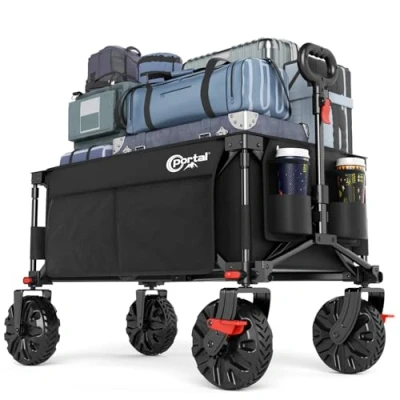 PORTAL Beach Trolley on Wheels for Sand with Brakes All Terrain Big Festival Camping Folding Wagon Garden Supports 110kg Heavy Duty Collapsible