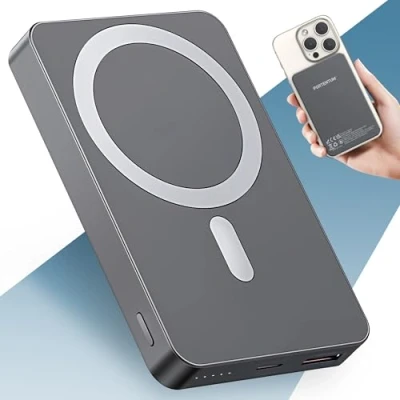 PORTENTUM MagSafe power bank fast charging 10000 mAh ultra slim 14 mm Portable charger magnetic 22.5 W PD & QC Qi 15 wireless Battery pack USB C + A for iPhone Samsung Smartphones Tablets