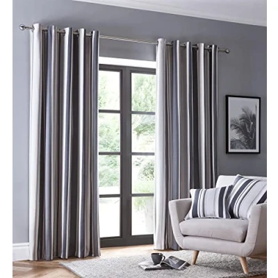 Decorated with an elegant vertical stripes, these stunning curtains are completed in a soft warm tones of charcoal and are perfect for opulently dressing your window. Crafted from an easycare polycotton blend with modern silver eyelet header for smooth movement and easy installation to your curtain pole, Avenue offers the perfect finishing touch to any room. These curtains are fully lined for improved insulation and privacy. One pair of curtains (66x90"/168x229cm) Material - Face: 70% polyester, 30% cotton. Lining: 85% polyester 15% cotton Care instructions - Dry clean only. These curtains are fully lined for improved insulation and privacy.