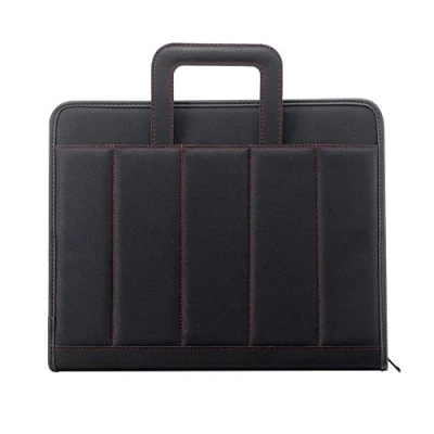 600D Polyester Portfolio Folder With zipper closure and handles, multi-pockets, complete with lock and calculator Colour: black / red stitching Dimensions: 35.5 x 28.5 x 4.5 cm