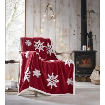 Portfolio Living Snowflake Throw Red Fleece Blanket Reversible Sherpa 130x170cm