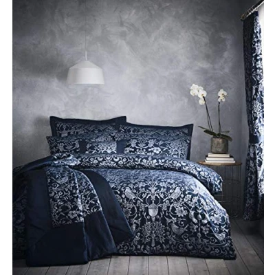 Influenced by the traditional 19th century arts & crafts style, Oak tree jacquard captures the values of these artists, hand drawn natural elements, simple wood block shapes all produced in a high quality woven relief jacquard 1 x Super king size duvet cover (220x260cm) plus 2 matching pillowcases (50x75cm) Material - Front : 100% Polyester, Reverse : 50% Polyester 50% Cotton Care insturctions - Machine Washable at 30°C and Tumble Dry Beautiful high quality bedding. Matching cushions, bedspreads and curtains available.