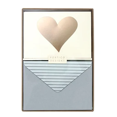 Portico Designs Gold Foiled Heart Notecards Set of 10 with coordinating envelopes in presentation box blank inside,Card size 14.8x10.5cm