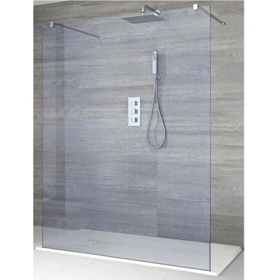 Portland Luna Chrome Floating Walk In Frameless Wet Room Shower Enclosure with Smoked Glass Screen Support Arms and White Slate Effect Tray