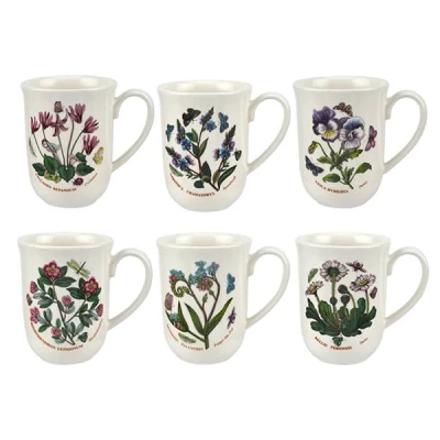 This Portmeirion Botanic Garden Set of 6 Tulip Beaker mugs all feature different floral motifs and butterfliesThe tulip design of these mugs ensure the enjoyment of drinking the tea of coffee inside the mug.The set of 6 tulip beaker mugs set can be used to pop in the microwave for warming the contents and are dishwasher safe for easy and convenient cleaning.Size: 10.5(H) x 11.7(W) x 8.3(D)cm. Made in England.Botanic Garden features the iconic laurel leaf border with a range of beautiful flowers. Inroduced in 1972, even after 50 years this distinctive range is still being bought, used and loved by customers all over the globe.