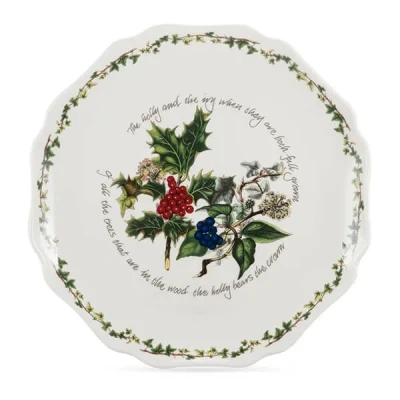 The Holly & The Ivy by Portmeirion Scalloped Platter is perfect for Christmas and festive entertaining.Beautifully adorned in bold and colourful illustrations of rich green foliage and lush red berries, the scalloped platter is ideal for a traditional home but also fits in with modern day living.Ideal for use throughout the day from breakfast through to dinner, the scalloped platter is suitable for use in the microwave and the oven, withstanding temperatures up to 200°C. The platter is also safe for storing food in the fridge and freezer.The platter is dishwasher safe for easy and convenient cleaning. Size: 3(H) x 28(W) x 28(D)cm.