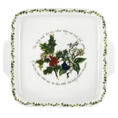 PREMIUM CERAMIC DESIGN: This Holly & Ivy square cake plate from Portmeirion features elegant handles for easy serving and a timeless festive design, perfect for showcasing cakes or desserts. VERSATILE & PRACTICAL: Measuring 32cm x 28cm (12.5" x 11"), this ceramic plate is ideal for everyday use or special occasions, adding a touch of holiday charm to any table. EASY CARE & DURABILITY: Made from high-quality ceramic, this square cake tin-style plate is dishwasher, freezer, oven, and microwave safe, combining convenience with sophisticated design. THE HOLLY & IVY COLLECTION: A festive dinnerware and homeware range designed for the Christmas season. It features a classic seasonal motif of botanical illustrations of holly leaves and red berries inspired by the traditional Christmas carol. PORTMEIRION CRAFTSMANSHIP & HERITAGE: Backed by over 60 years of British design excellence, Portmeirion dinnerware is renowned worldwide for its exceptional craftsmanship, timeless style, and trusted quality that elevates every dining occasion.