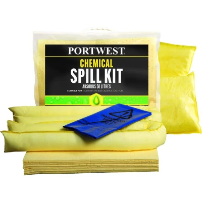 Introducing the Portwest 50 Litre Chemical Kit in Yellow: a versatile solution engineered for the effective containment and management of chemical spills. Suitable for both exterior and interior settings, this kit embodies precision, performance, and reliability, ensuring optimal safety across varied environments.Key Features: Versatility at its Best: Crafted for use in both outdoor and indoor scenarios, this kit provides flexibility and convenience in addressing chemical spills wherever they occur. Reinforced Construction: The pads and socks feature a reinforced design, ensuring they retain harmful and hazardous substances, including acids and solvents, with utmost efficacy. Comprehensive Protection: Beyond mere containment, the kit ensures harmful chemicals are securely locked in, reducing risks and enhancing safety measures. Standards Compliance: Adhering to the BS 7959-1 and BS 7959-3 standards, this kit showcases top-notch quality, offering a reliable response mechanism for chemical spills.The Portwest 50 Litre Chemical Kit in Yellow stands as a testament to robust design and effective functionality. With its reinforced construction and standards-compliant design, it assures a holistic and dependable approach to managing chemical hazards, creating a safer space for all.