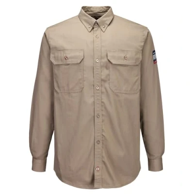 Step into safety and style with the Portwest Bizflame 88/12 FR Shirt in Khaki. This stylish work shirt promises not only a great appearance but also maximum protection in high-risk environments. Being lightweight and comfortable, it facilitates ease of movement while ensuring safety through permanent flame resistance and ARC2 protection against electric arc.Key Features: Lightweight and Comfortable: Designed for ease of movement, its lightweight fabric ensures comfort throughout the day. Dual Hazard Protection: The shirt offers protection against various hazards, ensuring safety while working. Functional Chest Pockets: Comes equipped with two chest pockets that feature button and flap closure for secure storage, along with a pen division on the left pocket for added utility. Shirt Tail Hem: The tailored shirt tail hem ensures the shirt remains tucked in, promoting a neat appearance all day long. Adjustable Button Cuffs: Featuring adjustable button cuffs, it allows for a comfortable and secure fit to meet individual preferences. Wide Range of Sizes: To cater to different body types, it is available in sizes up to 5XL. ARC2 Protection: Offering ARC2 protection, it safeguards against electric arcs, providing enhanced safety in hazardous work environments.Compliance with Standards: OETI (Institut fuer Oekologie, Technik und Innovation GmbH) EN ISO 11612 (A1+A2, B1, C1) NFPA® 70E NFPA® 2112 ASTM F1506 IEC 61482-2 IEC 61482-1-1 (Elim 9.1 CAL/CM²) ASTM F1959/F1959M-12 (ATPV 8.2 CAL/CM² (HAF 69.1%))The Portwest Bizflame 88/12 FR Shirt in Khaki is a must-have for professionals seeking both safety and style. Offering dual hazard protection and convenience with its functional features, it ensures you remain comfortable, secure, and stylish as you go about your work day.