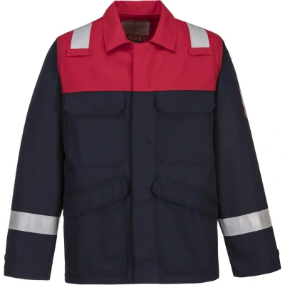 Meet the superior choice in protection and style - the Portwest Bizflame Plus Jacket in Navy. Crafted meticulously with enhanced visibility features and tailored to provide optimal protection, this jacket offers a fusion of safety, comfort, and style. Detailed with high-visibility reflective tape that is double stitched and enhanced with triple-stitched seams, it promises longevity and increased visibility in low-light conditions. Let’s explore its prime features and the stringent standards it abides by:Features: Protection Against Various Heat Sources: Offers shield against radiant, convective, and contact heat, safeguarding you in diverse hazardous environments. Class 2 Welding Protection: Designed to offer paramount protection during welding tasks. Pocket Details: Equipped with two lower pockets and two chest pockets with stud closure, offering safe and convenient storage options. Concealed Front Brass Zip: Furnished with a concealed brass zip coupled with press studs, it ensures a secure and comfortable fit. Adjustable Sleeve Opening: Allows for a customized fit and added comfort during long working hours. Contrast Colouring: Adds a stylish edge to your work attire without compromising on safety. Available in Various Sizes: Ensures a perfect fit for everyone with availability in sizes up to 4XL. Triple-Stitched Seams: Adds to the durability, promising a long-lasting wear.Standards: EN ISO 11612 (A1+A2, B1, C1, E2, F1) EN ISO 11611 Class 2 (A1+A2) EN 1149 -5 IEC 61482-2 IEC 61482-1-1 (Elim 8.6 CAL/CM²) IEC 61482-2 IEC 61482-1-2 APC 1 ASTM F1959/F1959M-12 (ATPV=13.6 Cal/CM2 (HAF=82%))Verified by SATRA Technology Europe Ltd, the Portwest Bizflame Plus Jacket in Navy stands tall, meeting a wide array of critical industry standards, assuring its reliability in various hazardous environments. Equip yourself with a jacket that encapsulates safety without sacrificing on comfort and style.