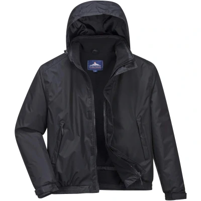 Ensure top-notch protection against wet and windy conditions with the Portwest Calais Bomber Jacket in Black. This high-quality bomber jacket offers unparalleled waterproof and windproof features, guaranteeing you stay dry and comfortable in unfavorable weather conditions. Its distinctive design coupled with functional features makes it a must-have for anyone in need of reliable outerwear.Key Features: Waterproof and Breathable: Thanks to its taped seams, it prevents water penetration, ensuring a comfortable and dry experience. Fully Lined and Padded: Designed with a fleece lining and padded sleeves, it traps heat to provide maximum warmth and comfort. Convenient Pack Away Hood: The style includes a clever pack away hood to offer flexibility in changing weather conditions. Multiple Pockets: Comes with four pockets, including internal ones for secure storage, offering ample space for all your essentials. Storm Flap Front: Protects you from the elements, ensuring that you stay warm and dry even in stormy weather. Adjustable Cuffs: Features hook and loop cuffs that can be adjusted for a secure and comfortable fit. Corporate Wear Friendly: Its elegant design makes it ideal for corporate wear, and it can be customized with finishes to suit your style. Extremely Water Resistant: The fabric finish ensures that water beads away from the surface, enhancing its water-resistant property.Standards: Meets the EN 343 Class 3:1 X standard, showcasing its excellent waterproof capabilities with a water penetration resistance of up to 3,000mm.Choose the Portwest Calais Bomber Jacket for a stylish yet functional attire that offers unbeatable protection against harsh weather conditions. Be it rain or wind, this jacket has got you covered.