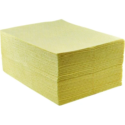 AmazonCHEMICAL HAZARD: Perforated single spun bonded layers gives excellent tensile strength and rapid absorption properties. Suitable for use in lint free environments. Each pad can absorb 0.5L of aggressive and non-aggressive chemicals. MATERIAL, SIZE AND RANGE: Chemical Pad. Available Yellow. One Size. Meltbrown Polypropylene STANDARDS: BS 7959-1, BS 7959-3