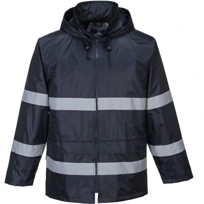 Welcome the Portwest Classic Iona Rain Jacket - Navy. Engineered to be both lightweight and practical, this jacket is perfect for those who seek dependable waterproof protection combined with enhanced visibility. With its thoughtful design and features, you can trust this jacket to keep you dry and visible, whether during a drizzle or a downpour.Key Features: Complete Waterproofing: Made from a lightweight fabric, reinforced with taped seams, this jacket guarantees zero water penetration. Moreover, the fabric is finished to be extremely water-resistant, causing water to bead and roll off effortlessly. Maximized Breathability: Integrated with a vented back yoke and eyelets, it assures optimal breathability, ensuring you remain comfortable throughout your wear. Increased Visibility: Outfitted with reflective tape, it promises enhanced visibility, making it ideal for those late-night or early morning outings. Customizable Comfort: With a pack-away hood and adjustable drawcord on the hem, you get to decide the fit and coverage that's best for you. The inner elasticated cuffs provide a snug fit, effectively blocking out the wind and rain. Convenient Access: The front zip opening ensures that putting on or taking off the jacket is always a breeze. Ample Storage: The generously sized pockets are perfect for safeguarding your essentials, keeping them close and dry.Certified to meet the standards of EN 343 Class 3:1 X (WP 5,000mm) and EN 17353 Type B3, the Portwest Classic Iona Rain Jacket in Navy stands as a testament to quality and functionality. Whether you're heading to work, taking a walk, or embarking on an outdoor adventure, this jacket has got you covered, both literally and figuratively.