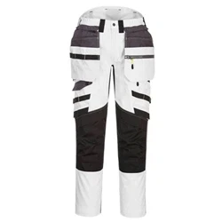 Introducing the Portwest DX4 Detachable Holster Pocket Trouser in White/Grey: An embodiment of cutting-edge design blended with pioneering fabric technology. For professionals who seek both performance and exceptional comfort, the DX4 in White/Grey is a game-changer. This trouser is not just functional wear, but a representation of meticulous craftsmanship and utility. Make a distinct statement at work with the DX4 White/Grey trouser.Key Features: Seamless Movement: Experience unparalleled freedom with the innovative 4-way stretch fabric, ensuring every motion is fluid and effortless. Visibility Elevated: The HiVisTex Pro segmented reflective tape paired with reflective piping assures you're conspicuous, enhancing safety in dimly lit environments. Generous Storage: Boasting a total of 16 pockets, including spacious front pockets and versatile zip thigh pockets, each item finds its rightful place. Comfort Redefined: Durability is a given with the triple-stitched seams, and the unique crotch gusset design eradicates potential stress points. The raised back waistband, featuring side elastication, guarantees optimal comfort in every stance. Customized Knee Support: Benefit from the pre-bent knee design and the dual-tier knee pad pockets, offering two positioning options to cater to your preference.Upholding its commitment to unparalleled quality, the Portwest DX4 Detachable Holster Pocket Trouser aligns with the EN 14404: 2004 + A1: 2010 Type 2 Level 0 standards when combined with S156.Choosing the DX4 White/Grey trouser is more than just selecting a piece of attire. It's an investment in a perfect fusion of innovation, supreme comfort, and enduring resilience.