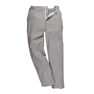Introducing the Portwest Harrow Chefs Trouser in Houndstooth, a perfect blend of fashion and functionality for every culinary artist. With its iconic houndstooth pattern, this trouser is not only a nod to tradition but also a testament to the timeless nature of quality workwear.Key Features: Stain-Repellent: Armed with a premium finish, these trousers actively repel oil, water, and everyday kitchen grime, allowing chefs to maintain a pristine appearance throughout their shifts. Enduring Fabric: Crafted from a hard-wearing twill fabric, the trousers ensure enduring color with excellent dye retention, even after numerous washes. Comfortable Fit: Designed for long hours, the trousers come with a half elasticated back waist, ensuring a comfortable and snug fit tailored to every individual. Multipurpose Pockets: With a total of 3 pockets, including side and back pockets, keep essential tools or personal items close at hand, maximizing convenience during busy kitchen hours. Versatile Design: Boasting a stylish unisex design, the trousers are suitable for various roles within the culinary world, from chefs to kitchen assistants.The Portwest Harrow Chefs Trouser in Houndstooth is a testament to Portwest's commitment to creating workwear that is both stylish and practical. Whether you're a seasoned chef in a five-star establishment or an apprentice learning the ropes, these trousers are an essential addition to your culinary wardrobe.