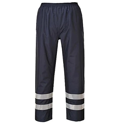 Ensure your comfort and safety in adverse weather conditions with the Portwest Iona Lite Trouser in Navy. This generously sized over trouser is styled to be worn over your work trousers, protecting you from the elements while keeping you warm. The clever design features a range of attributes that cater to your comfort and safety needs, making it a must-have for your work wardrobe.Key Features: Generously Sized: The over trouser is designed to offer an additional layer of protection, keeping you dry and acting as a chill-proof shield. Reflective Tape: Incorporated reflective tape increases your visibility, ensuring safety in low light conditions. Water-Resistant Fabric: The fabric used offers excellent water resistance, with water beading away from the surface to keep you dry. Abrasion-Resistant Oxford Polyester: Benefit from enhanced durability thanks to the abrasion-resistant oxford polyester material. Fully Elasticated Waistband: Designed for the ultimate wearer comfort, the fully elasticated waistband provides a snug and comfortable fit. Functional Pockets: The side access pockets allow you to easily reach items in your under-trouser pockets, adding to the practicality of the trouser. Adjustable Hems: Secure a fit that is both comfortable and safe with the stud adjustable hems, reducing tripping hazards.With certification from CE and adherence to standards including EN 343 Class 3:1 X (ensuring water protection up to 15,000mm) and EN 17353 Type B2, you can trust the Portwest Iona Lite Trouser in Navy to offer reliable and consistent performance. Equip yourself with Iona Lite Trouser and work with confidence, come rain or shine.