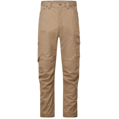 Slim fitting cargo trouser made from durable cotton stretch fabric that delivers long lasting comfort and freedom of movement. Packed full of features to offer enhanced performance including pre-bent knees, a high rise back waistband and an adjustable leg length for added convenience. Multi-functional thigh pockets are ideal for secure storage of phones, pens and tools.