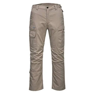 Introducing the Portwest KX3 Ripstop Trouser - Sand: A fusion of modern design, adaptability, and robustness. Crafted for the contemporary worker, this trouser is constructed from a pioneering ripstop fabric, ensuring a perfect fit that adapts to your movements. Thoughtfully articulated knees and a high-rise back waistband cater to a variety of postures, ensuring consistent comfort and protection.Key Features: Revolutionary Fabric: The stretch ripstop fabric not only guarantees exceptional durability but also offers unmatched comfort and freedom of movement. Modern Appeal: Featuring a state-of-the-art design enriched by an ergonomic cut, this trouser ensures you look as good as you feel. Storage Galore: A total of 14 pockets, including a rule pocket and multi-functional thigh pockets, cater to all your storage necessities, ensuring essentials are always at arm's length. Resilient Craftsmanship: Enhanced with triple-stitched seams for added resilience, and a crotch gusset design that minimizes stress, safeguarding against seam breakdowns. Tailored Fit: Attributes like pre-bent knees, two-tier knee pad pockets, and an adjustable hem allow customization for diverse leg lengths, ensuring a snug fit for every individual.The Portwest KX3 Ripstop Trouser - Sand not only meets but elevates industry standards. Certified to EN 14404: 2004 + A1: 2010 Type 2 Level 0 (when teamed up with S156), this trouser embodies a promise of unparalleled quality and performance.