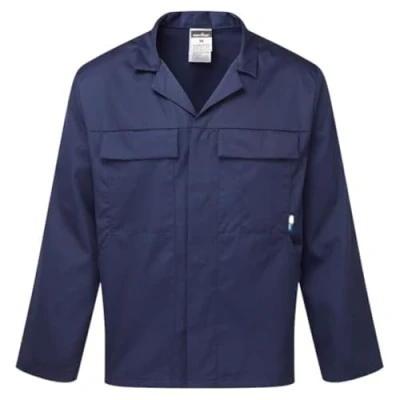 The Portwest Mayo Jacket, Four Pockets - Navy offers a harmonious blend of functionality and style. Built for the modern worker, this jacket is tailored with an action back, promising flexibility and comfort for dynamic movements. Its multiple pockets design ensures that everything you need is always within arm's reach, making it the ideal companion for those who prioritize convenience without compromising on elegance.Key Features: Durable Construction: Made from a durable polycotton fabric designed for optimum performance and maximum wearer comfort. UV Protection: Features a 50+ UPF rated fabric that efficiently blocks up to 98% of harmful UV rays. Multipurpose Pockets: Equipped with 4 pockets that provide ample storage, including a designated phone pocket for easy access. Freedom to Move: The action back design allows for enhanced freedom of movement during strenuous activities. User-friendly Design: Comes with a concealed stud front for swift and easy access.The Portwest Mayo Jacket stands as a testament to the brand's commitment to producing workwear that's not just about aesthetics but also about providing real-world utility and unmatched comfort.