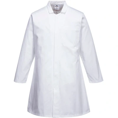Designed for professionals in the food industry, the Portwest Men’s Food Coat in White marries functionality with a clean and sleek style. Crafted to retain its shape wash after wash, it stands as a durable choice for those who demand reliability and convenience in a fast-paced work environment.Key Features: Non-Shrinking Fabric: You can count on this garment to maintain its form wash after wash, ensuring a consistently neat and professional appearance. Concealed Stud Front: The concealed stud front not only offers a clean line and modern look but also facilitates easy and quick access, a necessary feature in the bustling kitchens and food production lines. Internal Chest Pocket: Keep your personal belongings close and secure with the internal chest pocket, adding to the functionality of this food coat. Secure Storage: Equipped with a pocket designed for secure storage, it allows you to keep essential small items handy, without the fear of losing them during a busy workday.Embrace a garment that understands the demands of the food industry, offering a neat appearance and practical features to facilitate your day-to-day tasks. Opt for the Portwest Men’s Food Coat in White to experience comfort and functionality moulded into one.