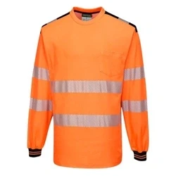 Portwest PW3 Hi Vis T Shirt L/S Orange/Black Large