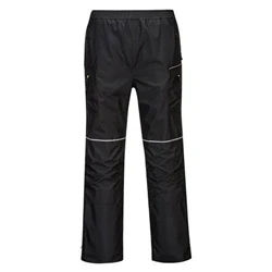 Embrace the elements with confidence in the Portwest PW3 Rain Trouser in Black. A perfect amalgamation of innovation and functionality, this trouser promises to keep you dry without compromising on comfort, even in the most challenging weather conditions.Key Features: Water Resistance: Made with a fabric that's not just water-resistant but actively repels water. Watch as droplets bead up and roll off, ensuring you stay dry in even the most torrential downpours. Optimal Comfort: A fully elasticated waistband, coupled with an elevated padded back panel, ensures a snug fit while keeping your lower back warm and protected from chilly gusts. Easy Accessibility: Whether you're adjusting your footwear or simply want to let a little air in, the extra-long side leg zips offer quick and convenient access. Strategic Storage: With 8 pockets, including secure zipped storage pockets, easy access cargo pockets, and external kneepad pockets, you have ample space to store essentials and tools of the trade. Enhanced Visibility: Reflective piping ensures you are seen, making it an excellent choice for low-light conditions or nighttime operations. Compliance: Adheres to EN 343 Class 3:3 X standards, validating its superior waterproofing (WP 10,000mm) and breathability (MVP 10,000g/M²/24hr) capabilities.The Portwest PW3 Rain Trouser in Black is more than a mere protective layer; it's a testament to Portwest's unwavering commitment to excellence and innovation. Tailored to perfection with a contemporary design and a slimline fit, it ensures that while you're shielded from the rain, you're always in vogue. When the skies open up, step out with assurance, knowing that with the PW3 Rain Trouser, you're always one step ahead of the elements.