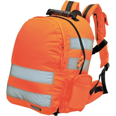 Introducing the Portwest Quick Release Hi-Vis Rucksack in Vibrant Orange. Engineered for those who prioritize safety without compromising on comfort or functionality, this rucksack stands out not just in its radiant color, but also in its dedication to user safety and convenience.Key Features: Safety First: Made with fabric and reflective tape that adheres to the stringent requirements of EN ISO 20471, ensuring optimal visibility even in low-light conditions. Quick Release System: Innovatively designed with an ergonomic quick release anti-entanglement system, acting as a vital protection device for hazardous environments. Convenience Unleashed: Comes with a secure, weatherproof outlet for MP3/CD players and mobile phones, keeping your gadgets safe and accessible. Designed for Comfort: Features padded double straps and a cushioned back panel, ensuring utmost comfort even during extended wear. Stay Connected: Integrated phone pocket allows for quick access to your mobile device without the hassle of searching through the bag.With the Portwest Quick Release Hi-Vis Rucksack in Orange, you're not just carrying a bag; you're making a statement about your commitment to safety, comfort, and style. Tailored for those who demand the best, this rucksack promises to be an indispensable companion, be it at work or play.