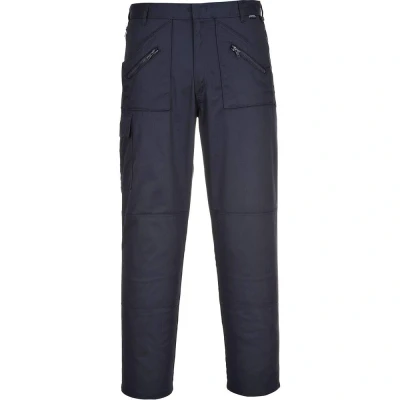 Introducing the Portwest Action Trouser in Navy. Exemplifying superior comfort combined with unparalleled functionality, this trouser stands out as a preferred choice for many. The reasons behind its soaring popularity are manifold: remarkable value for money, a palette of robust industrial colours, and an extensive selection in terms of sizes and lengths. Expertly crafted from high-grade poly-cotton, this trouser doesn’t just stop at being a piece of clothing; it sets the benchmark in its category.Key Features: Premium Fabric: The durable polycotton material promises optimal performance while ensuring the wearer enjoys maximum comfort. Reinforced Knee Protection: The dual-layer reinforcement in the knee area is specifically designed for enduring strength and durability, catering especially to tasks that involve a lot of kneeling or bending. Generous Storage: Boasting a total of 11 pockets, these trousers can accommodate an array of tools and personal items. The inclusion of two zippered back pockets offers a secure space for essentials. Enduring Durability: The reinforced seams vouch for added strength, ensuring a long-lasting life for the trousers even under intensive use. Utility at its Best: A conveniently placed cargo pocket offers quick access to tools or other necessities. Additionally, the trousers come with specialized pockets to house knee pads for those seeking that extra layer of comfort during rigorous activities. Zippered Pockets: The multiple zip pockets ensure that your belongings remain securely tucked away.The Portwest Action Trouser in Navy is more than just attire. It represents a blend of style, durability, and functionality. Whether you're at a demanding job or in search of a reliable trouser for regular wear, this product is designed to surpass your expectations in every way.