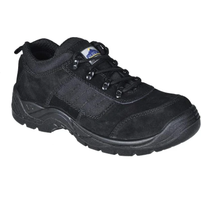 Presenting the Portwest Steelite Trouper Shoe in Black. Built with resilience at its core, the Trouper Shoe is the epitome of strength and flexibility, tailored for those enduring extended hours on their feet. With a steel toecap and midsole, coupled with oil resistance and an energy-absorbing seat region, it effortlessly combines safety and style.Key Features: Classic Workwear Appeal: Its timeless black design makes the Trouper a widely favored classic in the realm of workwear. High-Quality Material: Crafted with a suede and textile upper, the shoe promises durability without compromising on style. Maximum Breathability: The shoe's breathable inner lining ensures consistent air circulation, keeping the feet fresh even during prolonged wear. Easy On, Easy Off: A back pull-tab ensures a seamless experience when putting on or taking off the shoe. Refined Design: A leather-stitched toe bumper accentuates the shoe's elegance while ensuring an added layer of protection. Reliable Safety: A pierce-resistant steel midsole stands guard against potential threats, promising both safety and peace of mind.Certified by Intertek Italia S.p.A. and compliant with the EN ISO 20345: 2011 S1P standard, the Portwest Steelite Trouper Shoe is a testament to the perfect marriage of timeless design, unparalleled comfort, and unwavering safety.