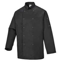 For dedicated professionals operating in the fast-paced environment of modern kitchens, the Portwest Suffolk Chef's Jacket L/S in Black epitomizes style and functionality. Crafted to deliver unparalleled comfort, this jacket empowers chefs to perform at their best while maintaining a sleek and polished appearance.