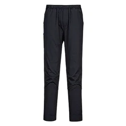Introducing the Portwest Surrey Trouser in Black: Where sophistication meets unparalleled comfort. This slim-fit trouser is meticulously designed for those who demand both style and functionality in their work attire. Whether you're navigating the heat of the kitchen or moving through the hustle of a busy day, the Surrey Trouser promises to keep you at ease.Key Features: Stay Clean and Dry: Equipped with a Texpel coating, experience the convenience of liquids rolling right off the fabric, ensuring you remain stain-free and presentable throughout the day. Ultimate Breathability: Designed for hot environments, the MeshAir Pro panels on the back waist, crotch gusset, and back of the knees guarantee maximum airflow, keeping you cool and comfortable. Natural Comfort: Made from 100% cotton fabric, enjoy the softness and breathability that only natural fibers can provide. Functional Storage: Whether it's your phone or small tools, the handy zipped side thigh pocket ensures everything has its place. Customized Fit: The fully elasticated waistband paired with a drawcord allows you to adjust for a perfect fit, while articulated knee darts and an adjustable hem ensure mobility and the right length, regardless of your build. Resilient Finish: The premium stain-resistant finish effectively repels oil, water, and grime, keeping your trousers looking pristine for longer.The Portwest Surrey Trouser in Black is a testament to Portwest's commitment to creating innovative, high-quality workwear. Designed with the modern professional in mind, it's not just a trouser - it's a promise of unparalleled comfort and style.