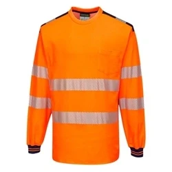 Introducing the Portwest PW3 Hi-Vis T-Shirt L/S - Orange/Navy. A fusion of high-quality construction and innovative design, this long-sleeved t-shirt is a testament to both style and functionality. Utilizing the distinctive HiVisTex Pro tape combined with the Cotton Comfort fabric, this piece promises effortless movement and unparalleled comfort.Key Features: Moisture Management: The fabric is engineered with moisture-wicking capabilities, ensuring you remain cool and dry regardless of your activity. Optimal Comfort: Its high cotton content delivers a soft and snug experience, making it a joy to wear for extended durations. Enhanced Visibility: Outfitted with the lightweight and flexible HiVisTex Pro segmented reflective tape, it guarantees your visibility even in low-light conditions. Functional Attributes: Comes with a practical chest pocket and side vents, optimizing comfort and utility. Elegant Design: Features a stylish crew neck and is crafted to provide a relaxed yet comfortable fit, perfect for both work and leisure.Accreditations and Standards: SATRA Technology Europe Ltd: A mark of its unmatched quality and durability. Visibility Standard: Conforms to the EN ISO 20471 Class 3 standards, ensuring you are always visible and safe. Global Safety Compliance: Aligns with the ANSI/ISEA 107 TYPE R CLASS 3 and ANSI/ISEA 107 TYPE P CLASS 3 standards, showcasing its global appeal and trustworthiness.The Portwest PW3 Hi-Vis T-Shirt is more than just clothing; it's a commitment to safety, comfort, and style. Whether you're at work or on a casual day out, this t-shirt is your perfect companion.