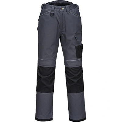 Introducing the Portwest PW3 Work Trouser in Zoom Grey/Black. Designed for the dynamic professional, this trouser combines a sleek design with a myriad of functional features, ensuring that you're always prepared, regardless of the task at hand.Key Features: High-Quality Material: Constructed from durable polycotton, providing both high performance and unmatched comfort throughout the day. Visibility Matters: Equipped with reflective piping, ensuring you're seen even in low-light conditions. Storage Galore: Comes with 10 pockets, including a specialized double rule pocket and a smart phone pocket, making sure you have space for all your essentials. Superior Durability: Features like the triple-stitched seams and reinforced panels add an extra layer of toughness to the trousers. Optimal Fit: With a gripper elasticated inner waistline, your upper body garments remain in place. Moreover, the adjustable leg length ensures you find your perfect fit. UV Protection: The fabric is rated 40+ UPF, blocking 98% of harmful UV rays, adding an additional layer of safety during outdoor tasks.In adherence to stringent standards, when used in combination with S156, these trousers meet the EN 14404: 2004 + A1: 2010 Type 2 Level 0 specification.The Portwest PW3 Work Trouser in Zoom Grey/Black is the embodiment of modern workwear. Whether you're in the field or the workshop, these trousers are the ideal companion, providing both style and substance.