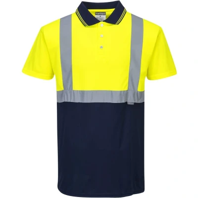 Experience a harmonious blend of modern design, safety, and comfort with the Portwest Two-Tone Polo in Yellow/Navy. This polo shirt is specifically designed for work environments where hi-vis protection is crucial, ensuring that you stay cool, dry, and visible, making it ideal for warm and dirty conditions.