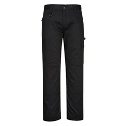 Discover the Portwest WX2 Work Trouser in Black: An epitome of robust design and contemporary style suitable for the hardworking individual of today.Key Features: Modern-Day Workwear: Emulating the timeless design of a classic work trouser, this garment is fabricated from the resilient Kingsmill fabric. Specifically designed to tackle demanding tasks, it offers both durability and aesthetic appeal. Optimal Durability: Crafted using a hard-wearing twill fabric, these trousers promise exceptional dye retention, ensuring they look as good as new even after multiple washes. Customized Fit: The adjustable hem makes it possible to tailor the trouser length to match individual requirements, ensuring a perfect fit for all leg lengths. Functionality At Its Best: Offering six spacious pockets, the trousers ensure ample storage space. The rule pocket, hammer loop, and easy-access cargo pocket are specifically incorporated to enhance the garment's utility and efficiency. Additionally, two back patch pockets provide added convenience. Protection From The Sun: With a 40+ UPF rating, these trousers offer protection by blocking out 98% of harmful UV rays, ensuring safety during outdoor tasks.The Portwest WX2 Work Trouser in Black symbolizes the perfect amalgamation of form and function. Whether it's a day at the construction site or an intensive workshop job, these trousers promise reliability, style, and unmatched performance.