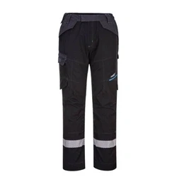 Step into the future of workwear with the Portwest WX3 FR Service Trouser in Black, meticulously crafted using the cutting-edge Modaflame 280gm fabric. With inherent flame-resistant properties that stand unaffected even after numerous washes, this trouser ensures optimum safety while promising a contemporary style.Key Features: Inherent Flame Resistant Qualities: Ensures the flame-resistant properties remain intact even after washing. Multifaceted Protection: Offering protection against radiant, convective, and contact heat, it stands as a safeguard in various working conditions. Flexible Design: Equipped with innovative stretch paneling in key areas, it facilitates excellent comfort and flexibility during movements. Reflective Tape: Features heat-applied segmented reflective tape to enhance visibility in low-light conditions. Customizable Fit: Comes with an adjustable hem and two-tier knee pad pockets, allowing adaptation to all leg lengths and preferred knee pad positions. Ample Storage: Designed with multiple utility pockets to provide secure and sufficient storage space.Compliance with Industry Standards: EN ISO 11612 (A1+A2, B1,C1,F1): Specifies clothing material performance requirements for protection against heat and flame. EN ISO 11611 Class 1 (A1+A2): Ensures protection during welding and allied processes. EN 1149-5: Provides protection against electrostatic discharge to prevent incendiary discharges. IEC 61482-2 IEC 61482-1-1 (Elim 6.4 CAL/CM² ): Designates protection against electric arc. IEC 61482-2 IEC 61482-1-2 APC 1: Offers protection against electric arc thermal hazards. EN 13034 Type PB [6]: Standard for protection against light spray of liquid chemicals. ASTM F1959/F1959M-12 (ATPV=8.4CAL/CM²(HAF=75.8%)): Determines Arc Thermal Performance Value, offering arc flash protection.Choose the Portwest WX3 FR Service Trouser in Black for a modern approach to safety and comfort in your working environment, complying with a range of industry safety standards.