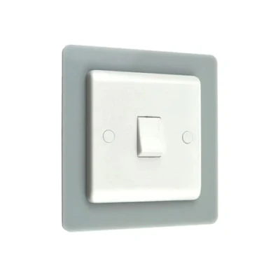 Grey plastic / Acrylic / Perspex surround, to protect walls from fingerprints and to add colour Sits behind switch / socket (Switch / socket is not included) Easy to install, easy to remove No glue / other adhesive is required, your switch / socket should hold them in place Various other colours are available, as well as double switch / socket surrounds May arrive with protective film on both sides, please remove this before use, Manufacturer: Pos Display Shop